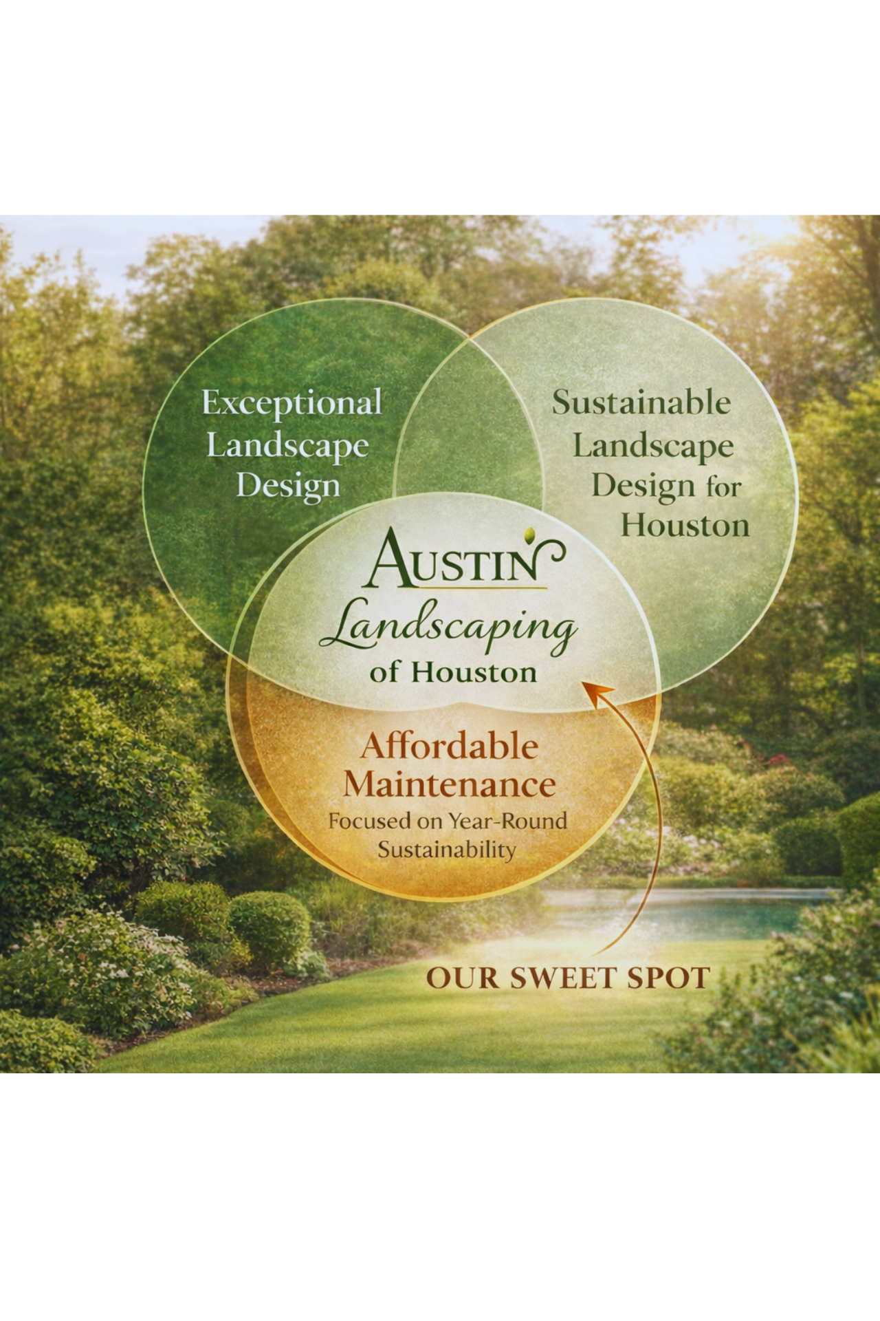Austin Landscaping has been providing high quality landscape maintenance, design and installation services for over 30 years for the Houston area. We create lush, lasting landscapes built for Houston’s climate — supported by sustainable design and year-round care.